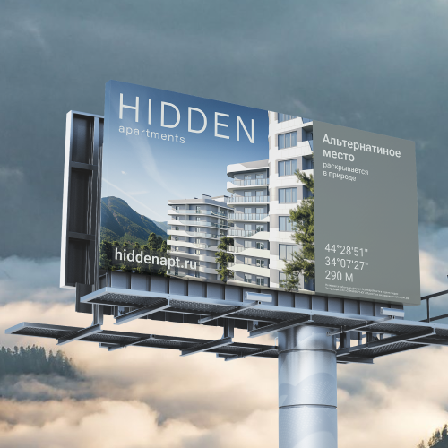 Исследование выявило потенциал локации и ключевой инсайт: спрос на спокойный, природный формат отдыха и долгосрочное пребывание. На этой базе сформировано позиционирование «комплекс для альтернативного отдыха» с акцентом на природу, тишину и всесезонность. Название HIDDEN отражает задачу «скрыться от суеты», айдентика визуализирует идею единения с природой: графика и палитра вдохновлены рельефом, хвоей и теплым светом. Концепция продолжена в продукте: благоустройство включает зоны ретрита, тропы, места созерцания и зеркальные арт-объекты.